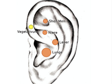 Das Ohr ist die einzige Stelle im Körper, an dem die Nervenenden des Nervus vagus an die Oberfläche treten und durch Akupunktur direkt stimuliert werden können. Eine Stimulation des Vagusnervs, des größten Nervs des Parasympathikus, trägt dazu bei, ein gestörtes Gleichgewicht zwischen Sympathikus und Parasympathikus und damit auch zwischen Yin und Yang wieder herzustellen.